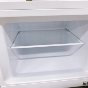 本体外装は目立つへこみや大きなキズは見られず、全体的に良好な状態でした。庫内もガラス棚・クリアケースともに割れや欠けはなく清潔感のある状態で、異臭や黄ばみも確認されませんでした。ドアポケットや温度調節ダイヤルの動作も問題なく、冷却性能も正常であることをその場で確認しています。