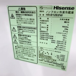 栃木県足利市でHisense HR-B12E2W 冷蔵庫を出張買取 庫内きれい・2022年製のため適正価格で査定しました