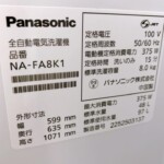 栃木県真岡市へPanasonic NA-FA8K1 電気洗濯機買取 内部まできれいな状態のため適正価格で査定しました