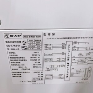 今回は栃木県下野市にお住まいの30代の会社員の男性より、シャープ 洗濯乾燥機 ES-TX6J-W(2025年製)の出張買取をご依頼いただきました。洗濯容量6.5kgの洗濯乾燥機で、単身世帯から少人数世帯まで幅広く使われているモデルです。