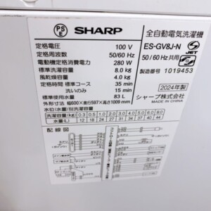 今回は天理市にお住まいの40代・男性、会社員で単身世帯、賃貸マンションにお住まいのお客様より、シャープ 全自動電気洗濯機 ES-GV8J-N(2024年製・洗濯容量8.0kg)を出張買取にてご依頼いただきました。