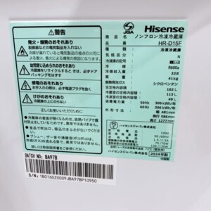 富山県高岡市にてHisense ノンフロン冷凍冷蔵庫 HR-D15F 2024年製を出張買取|庫内美品のため適正価格で査定しました