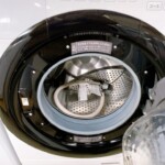本体外装には目立つへこみや割れはなく、ドアパッキンの劣化も少ない状態でした。ドラム内部は清掃が行き届いており、排水ホースなどの付属品も揃っていました。動作確認では洗い・脱水・乾燥の各工程ともに問題なく稼働し、使用感が比較的少ない印象を受けました。