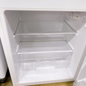 外装は全体的に大きなへこみや割れはなく、扉の開閉もスムーズに行えました。庫内は棚板やケースに割れもなく、使用に伴う小さな擦れ程度で清潔感のある状態でした。冷却動作も問題なく、温度調整ダイヤルの反応も正常に確認できました。