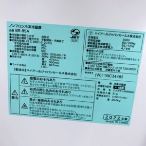 栃木県宇都宮市 Hisense 冷凍冷蔵庫 BR-85A 2022年製 庫内きれいなため適正価格で査定しました