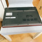 外観は赤色ボディ特有の細かな擦り傷や指紋跡が見受けられましたが、液晶割れやキーボードの欠損はなく、電源投入後の起動・基本動作も問題ありませんでした。バッテリーは経年相応ながらも動作確認時は安定しており、付属品は本体のみの状態でした。