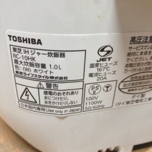 大阪府大阪市東住吉区へ東芝 IHジャー炊飯器 RC-10HK 買取 釜に細かな使用跡ありのため適正価格で買取査定をしました