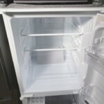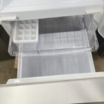 拝見した冷蔵庫は、外装に目立つ傷やへこみはなく、全体的に清潔感のある状態でした。庫内も棚板・ケースの欠品はなく、使用感が少ない印象です。