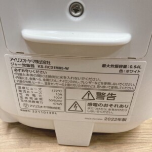 福岡県糸島市で炊飯器買取 アイリスオーヤマ KS-RC21M05-W 2022年製 使用感少なめのため適正価格で査定しました