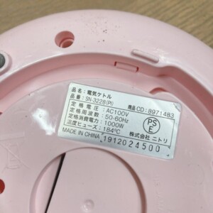 福島県いわき市へニトリ 電気ケトル SN-3228(PI) 出張買取 細かな使用感ありのため適正価格で査定しました
