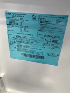 千葉県千葉市でHaier 冷凍冷蔵庫 JR-NF148CKを出張買取 外装の拭き跡とへこみを踏まえ適正価格で査定