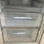 庫内は棚やケースが揃っており、破損もなく全体的に清潔感のある状態でした。一方で外装には、通常の擦れとは異なる拭き跡のようなムラが見られ、確認したところお客様が清掃された際に付いた可能性のある塗装剥がれに近い跡でした。また、正面パネルにはへこみも確認でき、外観評価に影響する状態でした。冷蔵・冷凍の冷却動作自体は問題ありませんでした。