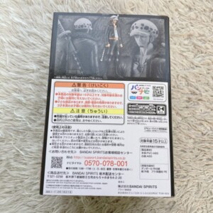 お預かりしたトラファルガー・ローのフィギュアは本体に破損は見られず、塗装の剥がれや大きな汚れもなく、全体的に良好なコンディションでした。箱には保管時に付いたと思われる軽いスレや角の小さなヨレが確認できましたが、コレクション性を大きく損なうものではありません。付属の台座や刀のパーツも揃っていました。