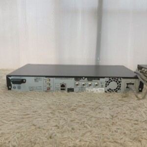 お引き取りしたブルーレイレコーダーは、天板や前面パネルに使用に伴う細かなスレやホコリの付着が見受けられましたが、大きな割れやへこみはありませんでした。通電確認後、電源の立ち上がりやディスクトレイの開閉、リモコン操作に問題はなく、録画・再生機器としての基本動作は良好な状態でした。付属品は本体と電源コードが揃っており、年式相応のコンディションと判断しました。
