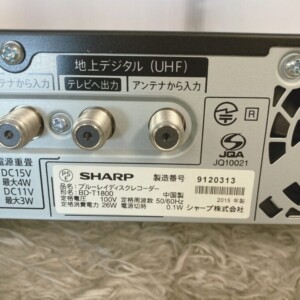 千葉県市原市でSHARP ブルーレイディスクレコーダー BD-T1800 使用感ありを出張買取しました