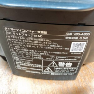今回は真庭市にお住まいの30代・男性・会社員・単身世帯・賃貸(アパート)のお客様より、タイガー マイコンジャー炊飯器 JBS-A055(マットブラック)を出張買取にてご依頼いただきました。