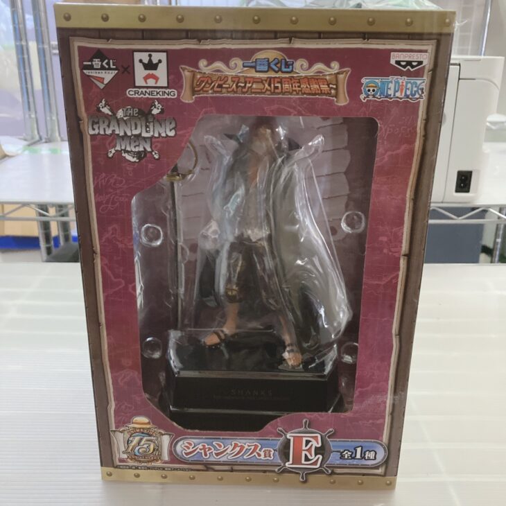 今回は東京都江東区にお住まいのお客様より、一番くじ ワンピースアニメ15周年感謝祭 シャンクス賞 E THE GRANDLINE MENを含むフィギュア類をまとめて出張買取にてご依頼いただきました。