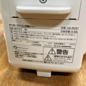 静岡県牧之原市でタイガー JAI-R551 マイコン炊飯ジャー きれいな状態のため出張買取しました