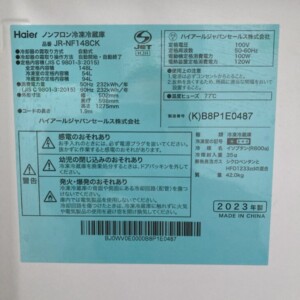 愛媛県四国中央市で冷蔵庫買取 Haier JR-NF148CK 2023年製 使用感少なめのため適正価格で査定しました