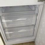 お預かりした冷蔵庫は、外観に目立つへこみや大きな傷は見受けられず、全体的にきれいな状態でした。前面ドアには使用に伴うわずかな拭き跡が確認できる程度で、再販に影響するダメージはありません。庫内も棚板・クリアケースともに欠損はなく、冷蔵室・冷凍室ともに清潔感が保たれていました。動作確認では冷却も安定しており、2023年製の比較的新しいモデルである点も高評価につながっています。