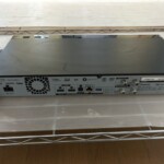 本体天面には拭き跡や薄い擦れが見られましたが、目立つへこみや割れはなく全体としては標準的な使用感でした。通電確認、ディスクトレイの開閉、リモコン操作も問題なく、純正リモコンと電源コードが付属していた点は再販時にも評価できるポイントです。