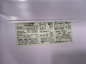東京都江東区で冷蔵庫買取 シャープ SJ-D18K-W 2023年製 庫内状態良好のため需要を踏まえて査定しました