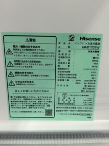 東京都足立区で冷蔵庫買取 Hisense HR-D1701W 2025年製 使用感が少なく需要を踏まえて査定しました