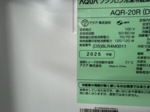 岐阜県各務原市で冷蔵庫買取 AQUA AQR-20R 2025年製 美品のため適正価格で査定しました