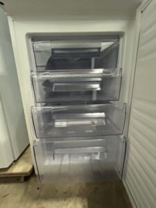 お預かりした冷蔵庫は、外装に目立つへこみや大きな傷はなく、全体的にきれいな状態でした。庫内についても棚・ケース・冷凍室の引き出しがすべて揃っており、割れや欠けは確認されていません。冷蔵・冷凍ともに動作は安定しており冷却性能にも問題はありませんでした。