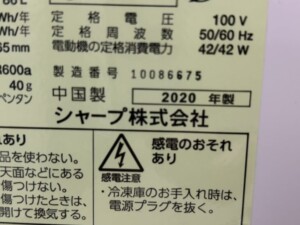 今回は徳島県阿南市にお住まいの40代男性・会社員・単身世帯のお客様より、SHARP(シャープ)2ドア冷凍冷蔵庫(2020年製)を出張買取にてご依頼いただきました。