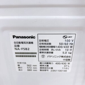 今回は愛媛県西条市にお住まいの40代女性のお客様より、Panasonic 全自動洗濯機 NA-F5B2の出張買取をご依頼いただきました。容量5.0kgのコンパクトサイズで、単身世帯や少人数のご家庭に人気のモデルです。