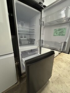 お預かりした冷蔵庫は、外観に目立つへこみや大きな傷は見受けられず、マットグレーの塗装面も比較的良好でした。庫内は棚板やドアポケットの欠品はなく、内部の強いニオイや汚れも少ない状態です。通電確認では冷蔵・冷凍ともに問題なく動作し、基本性能に不具合は見られませんでした。