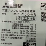 神奈川県三浦市にて三菱 MR-P15K-H形 冷蔵庫 2024年製 使用感少なめのため適正価格で査定しました