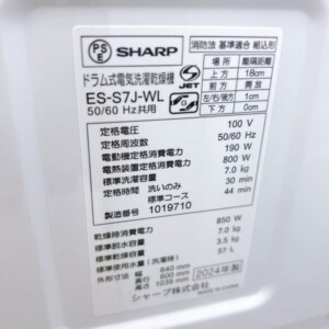 ES-S7J-WLは2024年製と非常に新しく、さらに付属品完備かつ使用感が少ない点を高く評価しました。中古市場でも高年式ドラム式洗濯乾燥機は需要が強く、当社では再販ルートを確保しているため、他社よりも高い水準での買取が可能です。これらを踏まえ、今回は15,000円での査定価格となりました。