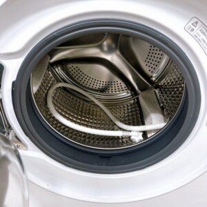ドラム内部は洗剤カスやカビ汚れなども見られず、内側は非常にきれいな状態でした。給水・排水ホースなどの付属品も揃っており、外観には指紋跡が少し見受けられる程度で、全体的に使用感は控えめです。通電確認および基本動作にも問題はありませんでした。