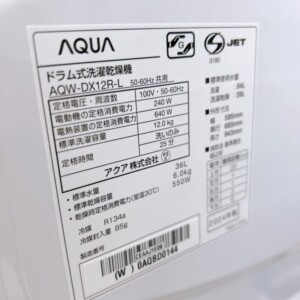 東京都江東区でAQUA ドラム式洗濯乾燥機 AQW-DX12R-L 2024年製を出張買取 外観に指紋が少々ある状態でも高額査定しました