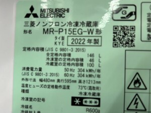 宮崎県川南町で三菱電機 冷蔵庫買取 MR-P15EG-W 2022年製 使用感が少なく状態を踏まえて査定しました
