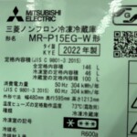 宮崎県川南町で三菱電機 冷蔵庫買取 MR-P15EG-W 2022年製 使用感が少なく状態を踏まえて査定しました