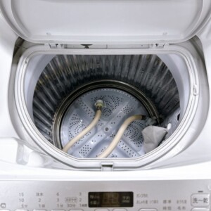外観は天板に軽度の使用感が見られましたが、目立つ傷や割れはありません。洗濯槽内部も清潔感があり、給水ホースなどの付属品も揃っていました。洗い・脱水・乾燥の各動作確認でも不具合はなく、全体的に良好なコンディションでした。