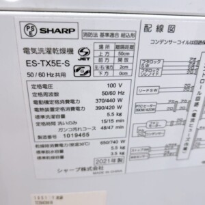 兵庫県加西市にてシャープ ES-TX5E-S 2021年製 洗濯乾燥機を他の不用品と一緒に出張買取しました