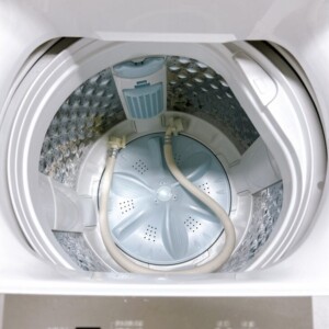 お預かりしたAW-700Z2は、外装にスレ・汚れが確認できましたが、槽内は写真の通りカビや洗剤汚れもほとんどなく非常に清潔な状態でした。給水ホースも付属しており、動作確認でも洗い・すすぎ・脱水ともに問題なく稼働。2023年製と比較的新しい点も評価につながりました。
