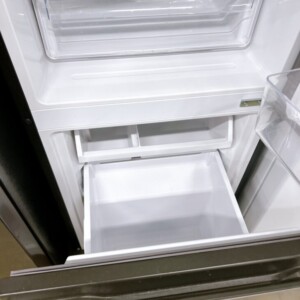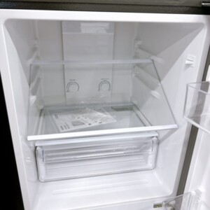 拝見した冷蔵庫は庫内が非常にきれいで、棚板やケースには保護フィルムが残っている部分もあり、使用感はほとんど感じられない状態でした。外装にも大きな傷やへこみはなく、ドアパッキンの劣化やにおい移りも確認されませんでした。動作確認でも冷却状態に問題はなく、安心して次の方へお渡しできる品質でした。