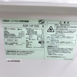 今回は新居浜市にお住まいの30代男性の方より、AQUA ノンフロン冷凍冷蔵庫 AQR-14P(DS)(2024年製)を出張買取にてご依頼いただきました。単身用として購入されたばかりでしたが、急な転勤により不要になったとのことでご相談をいただきました。