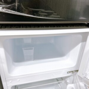 お引き取りしたRCT90WHは、外観に目立つ擦り傷やへこみはなく、庫内の棚板やドアポケットもすべて揃った状態でした。冷蔵室・冷凍室ともに清掃が行き届いており、臭い残りもほとんど感じられません。使用期間が短いことが伺える使用感の少ないきれいな状態でした。