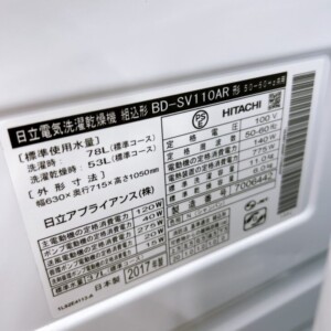 BD-SV110ARはビッグドラムシリーズの中でも洗濯容量が大きく需要のあるモデルですが、今回は外観の汚れが広範囲にある点を考慮する必要がありました。それでも内部状態の良さとホース付属を評価し、他社よりも条件を上げて4,000円での査定となりました。