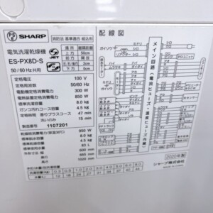 愛媛県宇和島市へ出張買取 SHARP 電気洗濯乾燥機 ES-PX8D-S 2020年製 外観に使用感があるため状態を考慮して査定しました