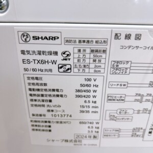 愛知県豊田市へ出張買取 SHARP 電気洗濯乾燥機 ES-TX6H-W 2024年製 外観に使用感はあるものの内部がきれいなため適正価格で査定しました