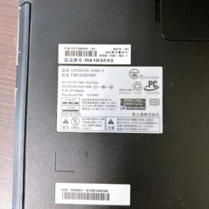 お持ちいただいたFMVA50XWPは、天板に擦れや薄い汚れがあり、全体的に使用感は見られましたが、キーボードの文字消えや大きな破損はありませんでした。通電・起動も確認でき、Windowsの立ち上がりも問題なく、処理性能を保っていました。純正のACアダプターも揃っており、動作面での不安要素は少ない印象でした。