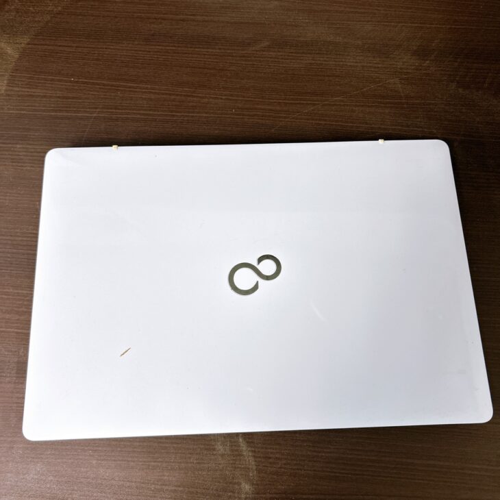 お持ちいただいたFMVA50XWPは、天板に擦れや薄い汚れがあり、全体的に使用感は見られましたが、キーボードの文字消えや大きな破損はありませんでした。通電・起動も確認でき、Windowsの立ち上がりも問題なく、処理性能を保っていました。純正のACアダプターも揃っており、動作面での不安要素は少ない印象でした。