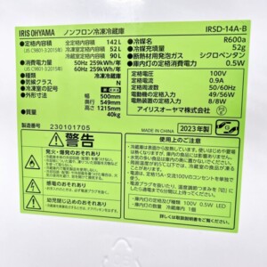 沖縄県宜野湾市で冷蔵庫買取 アイリスオーヤマ IRSD-14A-B 2023年製 使用感少なめのため適正価格で査定